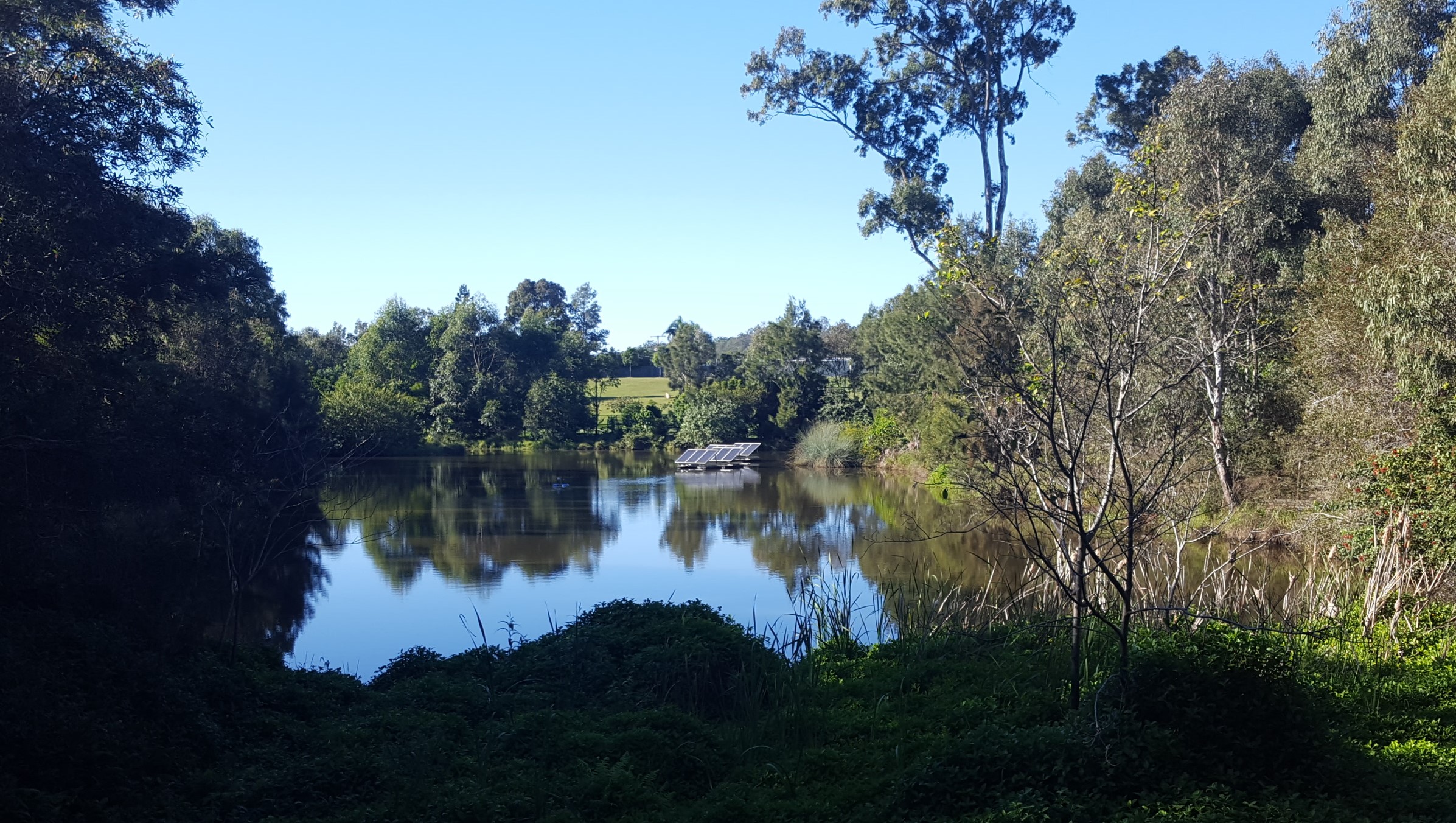 A soft breeze touched my face with a 12-degree crispness of the perfect blue sky and sunshine of a Queensland winter. Modern solar panels silently stood to attention in the mirrored water from which a Royal Spoonbill launched and glided past. She represented the biplane’s launch here 107 years ago, down a wooden rail, on a cradle, before becoming airborne.