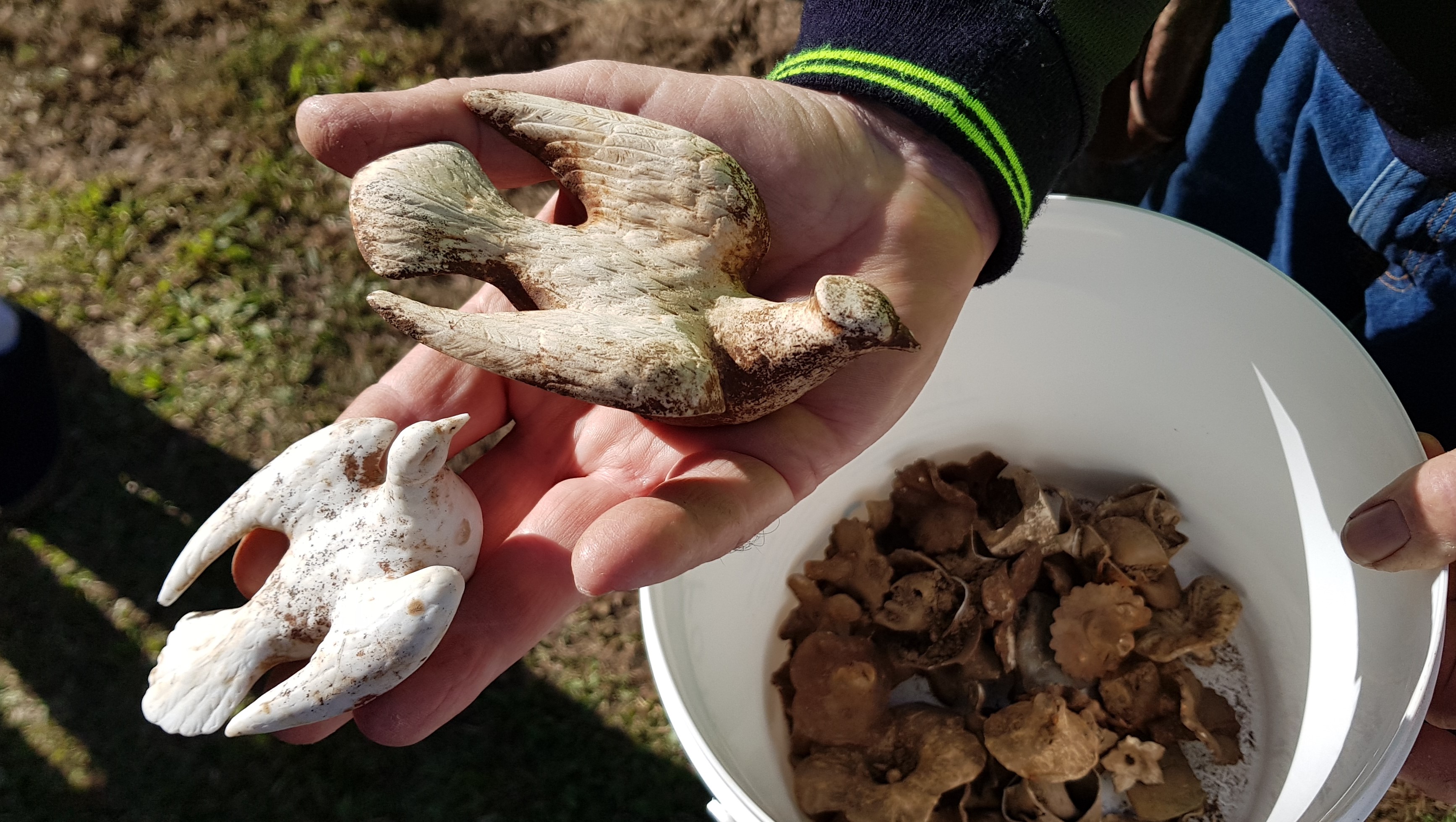 Volunteer amateur archaeologists this morning unearthed beautifully detailed porcelain doves and flowers. They will be housed in the museum of the Friends of Toowong Cemetery which is the organisation that’s helping run today’s dig.