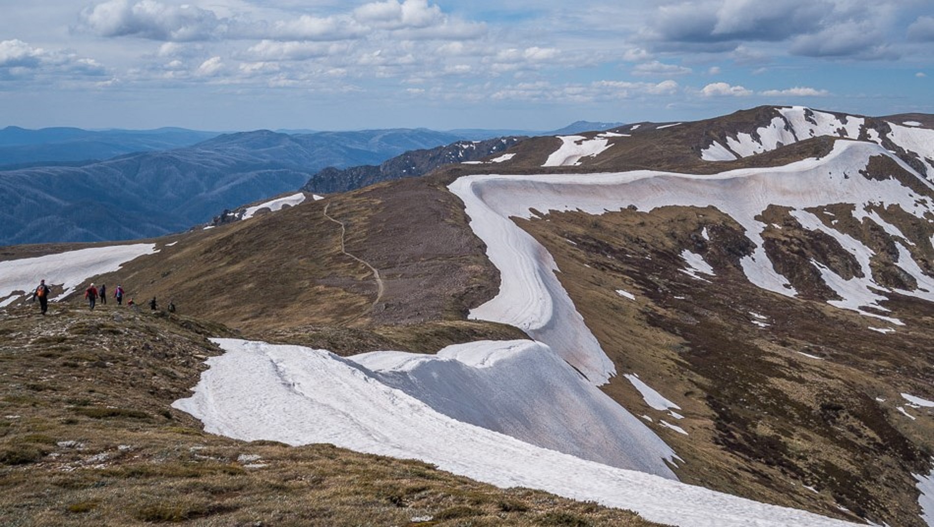 Ten Peak Trekkers heading towards Carruthers Peak – courtesy of Mike Edmondson www.mikeedmondson.com.au