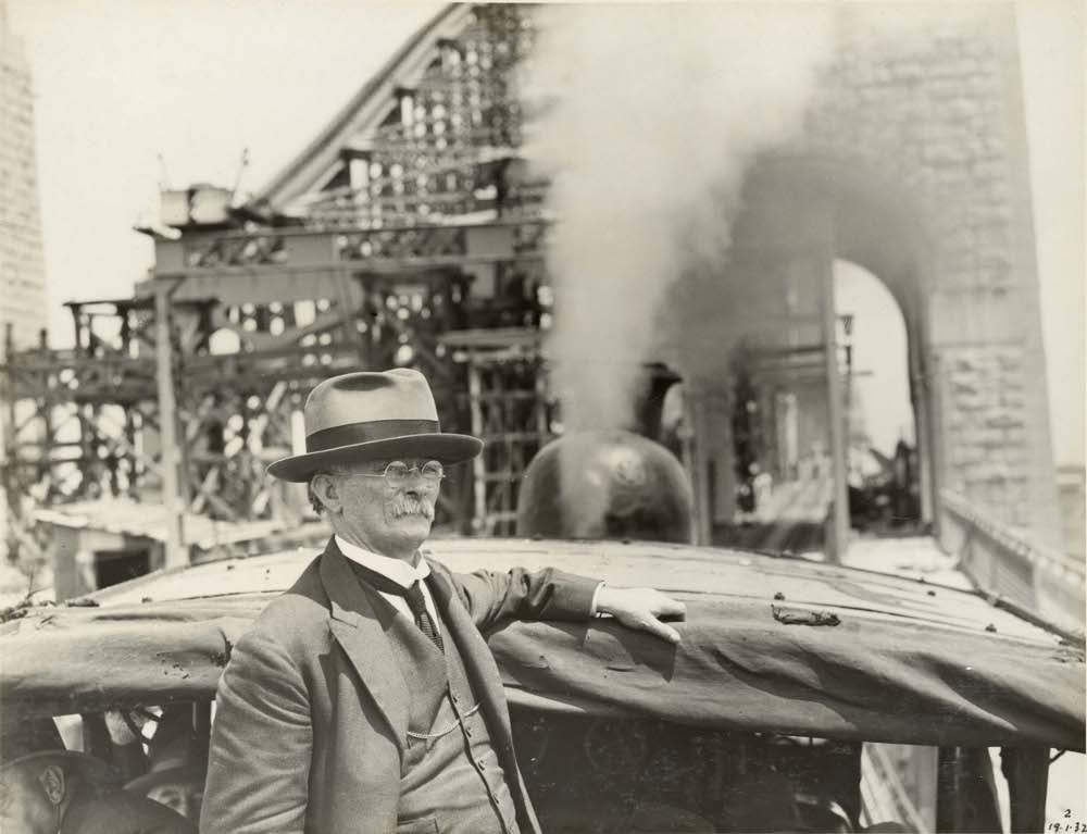 John Bradfield riding the first test train across the bridge on 19 January 1932 – State Records of New South Wales