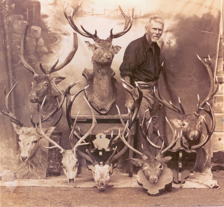 Richard John Edward Bradfield with stuffed stag heads 1920s – Ipswich City Council