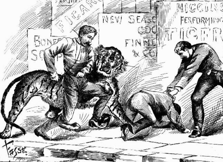 Tiger Fight in George Street – Queensland Figaro and Punch, Brisbane, 1st December 1888, page 1