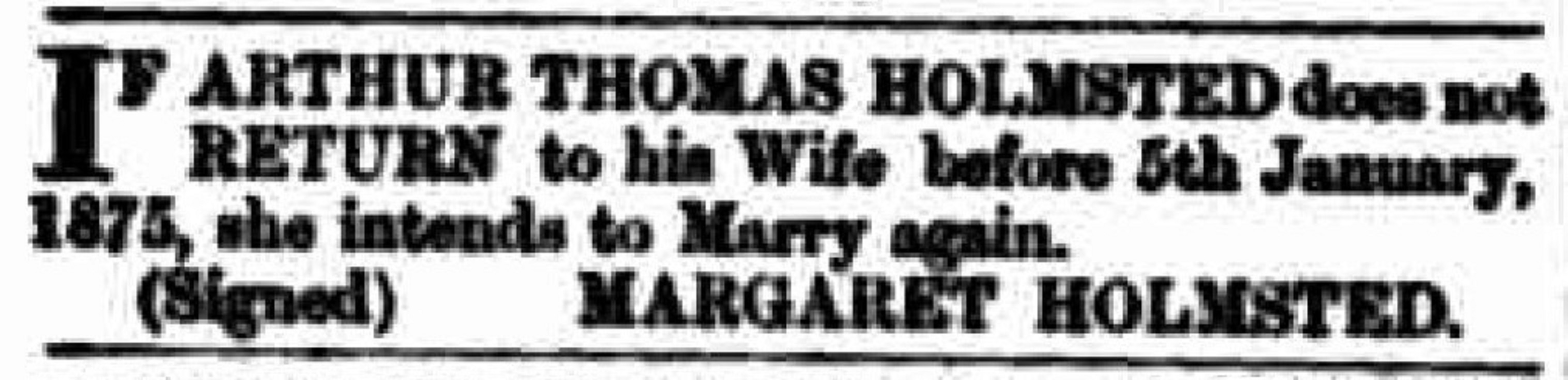 Her husband Arthur Holmested might have come in for similar treatment and run away. That’s because Mrs Holmested advertised on the front page of The Queenslander newspaper that if he didn’t return home within three months, then she intended to marry again. I’m not sure if the husband ever went home, but Mrs Holmested never did remarry.