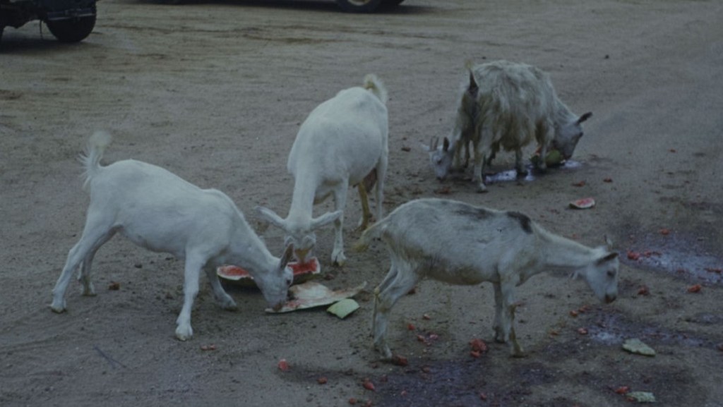 Goats scavenging in Eagle Street Longreach 1954 – Geoffrey Luck, University of Queensland.