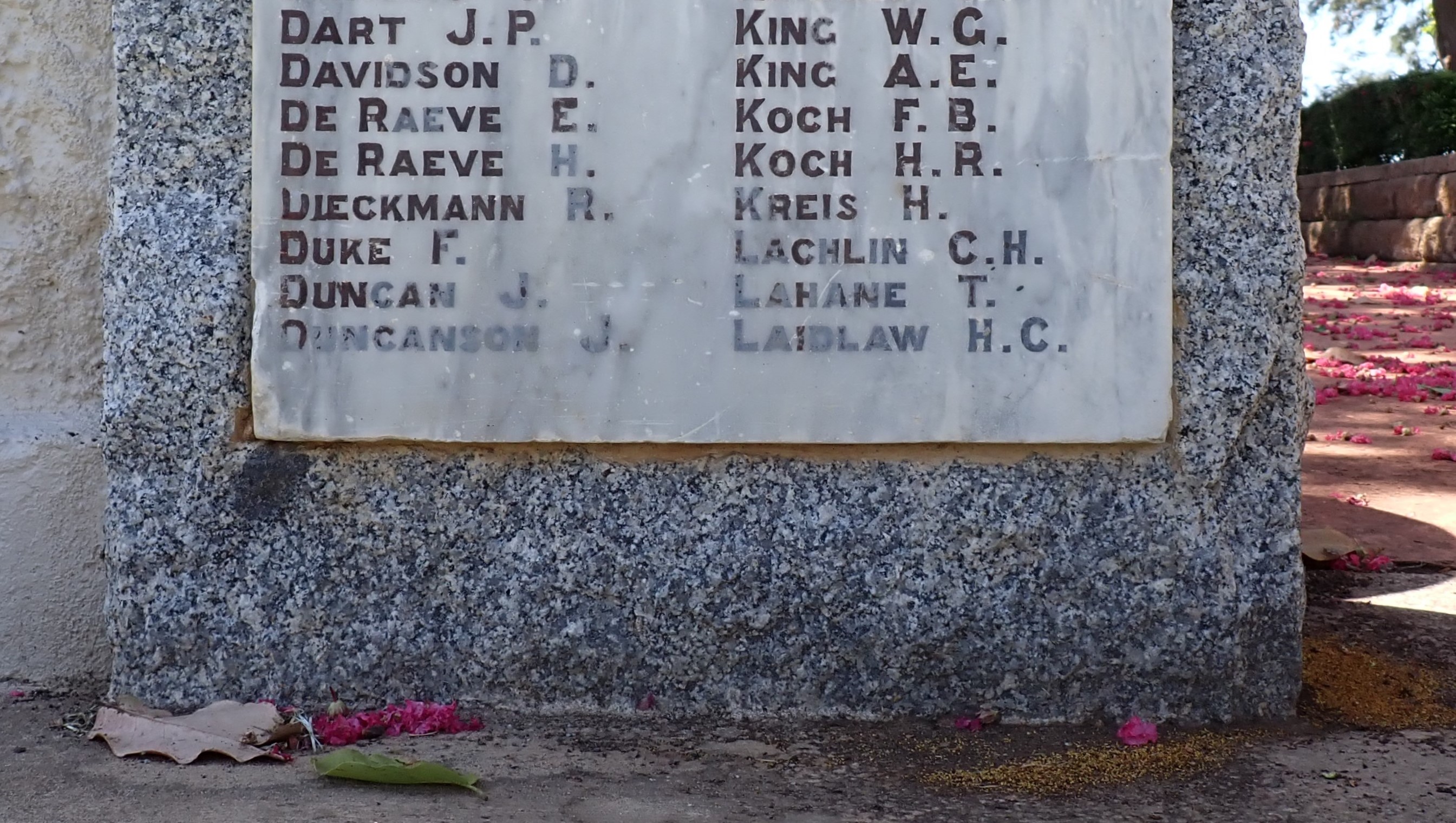 When I visited the memorial, it was bathed poignantly in the flowers of a blood-red bougainvillea. It may appear to be a minor error, but it’s an important one that should be corrected to properly honour Harold and his family.