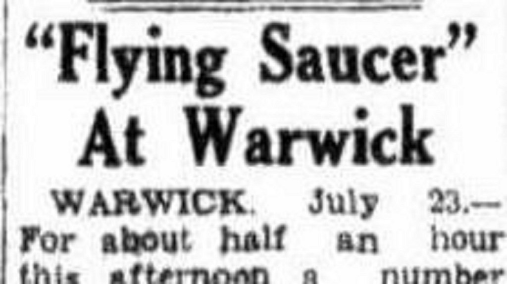 In July 1953, yet another strange object was seen over Warwick. For about half an hour from three o’clock in the afternoon, a number of residents watched a flying saucer move slowly around at high altitude.