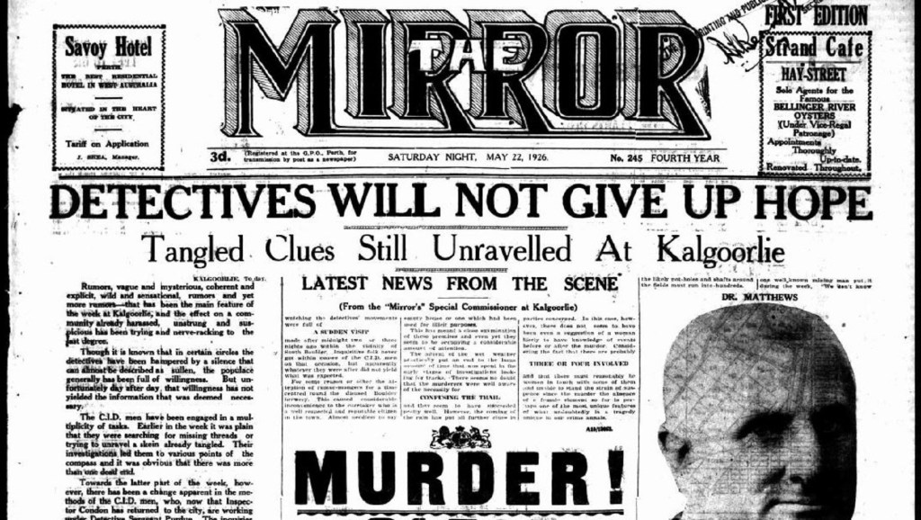 Detectives Will Not Give Up Hope headlines – Mirror, Perth, 22nd May 1926, page 1.