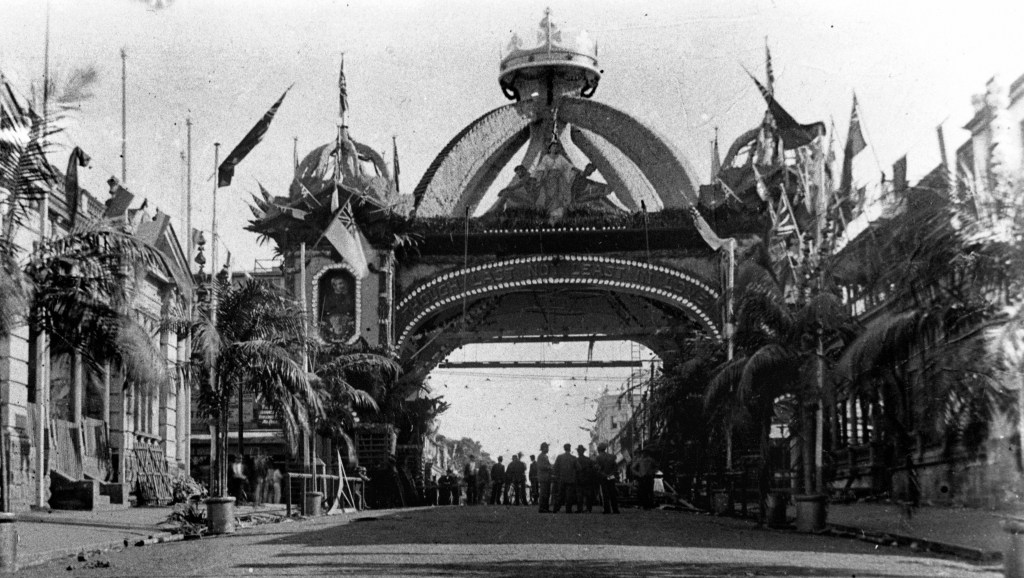 Ceremonial arch Brisbane visit of the Duke and Duchess of York and Cornwall May 1901 – Stat Library of Queensland.