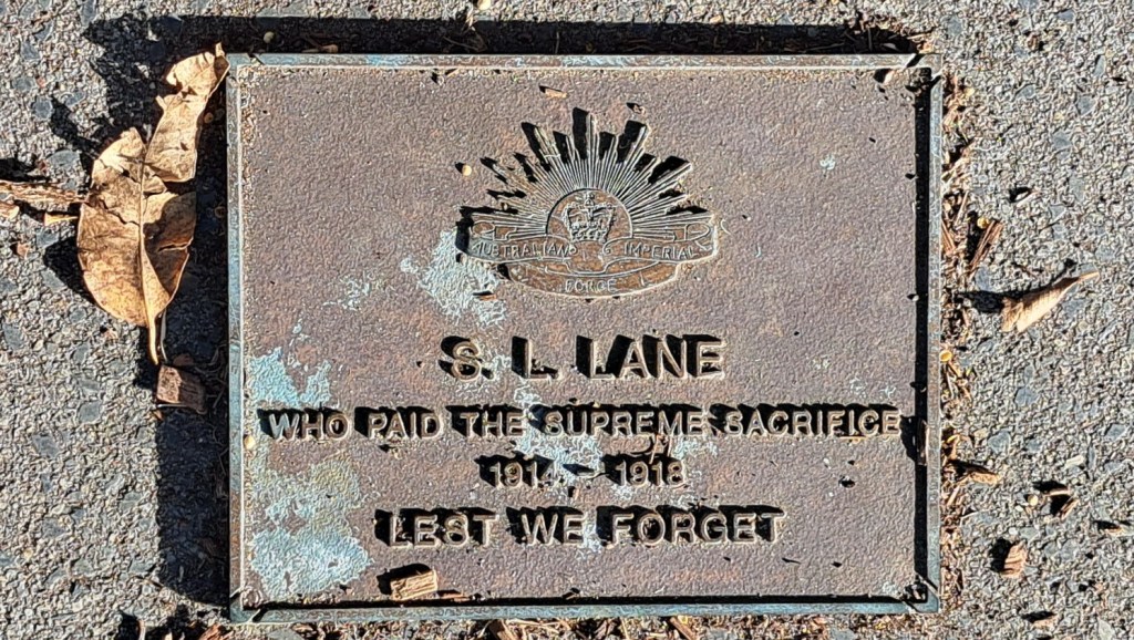 In the past I’ve found names that are wrong on war memorials and had them corrected, and now I’ve found another one. On the Canungra memorial is Solomon James Lane and he’s incorrectly recorded on the memorial as well as a plaque in the street as S.L. Lane, but it should be S.J. Lane instead. He died of bronchitis in 1917 just weeks after arriving in England, he didn’t even make it to the front.