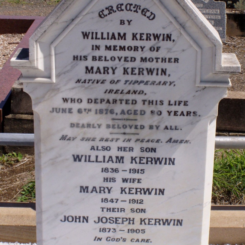 Specifically for John Kerwin, his son John Junior died after accidentally shooting himself while climbing through a fence. John himself didn’t see out the century because he died on April Fool’s Day the 1st of April 1899.