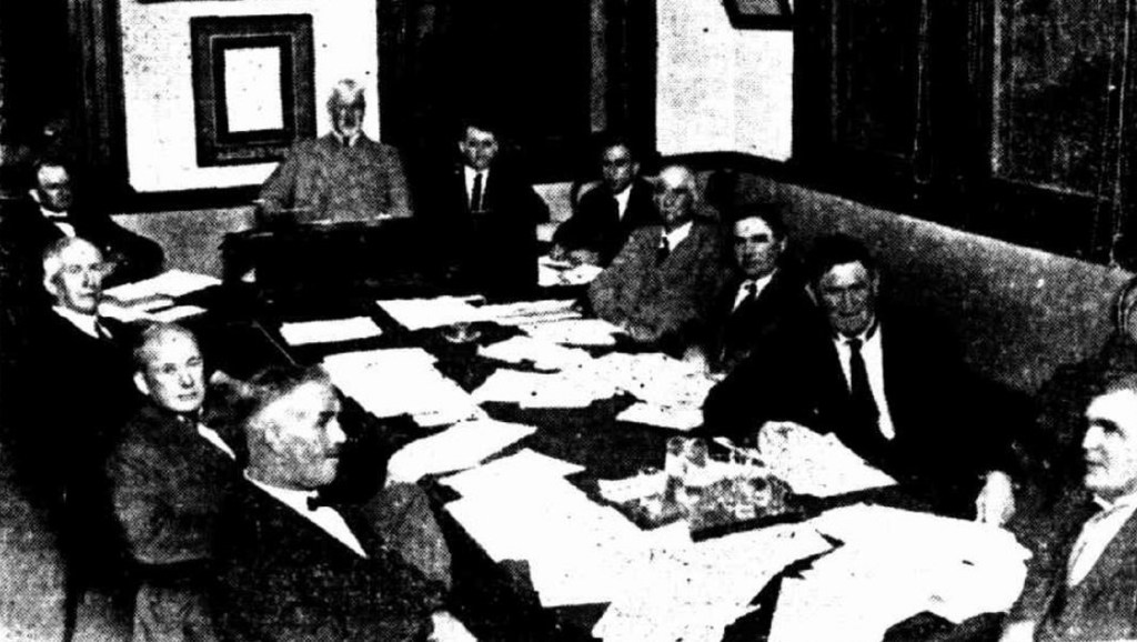 Toowoomba council meeting, Alexander Cathro bottom left – Toowoomba Chronicle and Darling Downs Gazette, 10th February 1932, page 10.