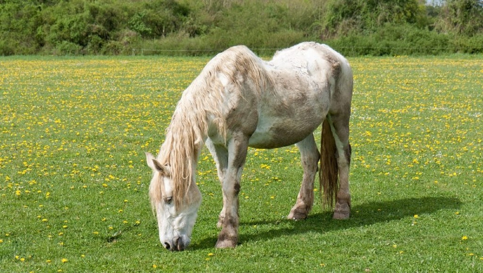 Old white horse in a meadow with dandelions – Royal Horse website.