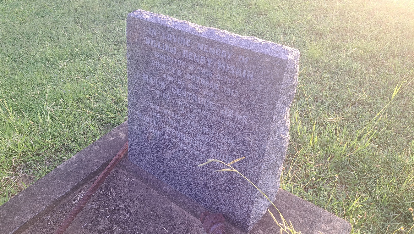 This week I found Miskin’s gravesite and headstone at the South Rockhampton cemetery and visited for the first time. Miskin is buried there, along with his servant girl.