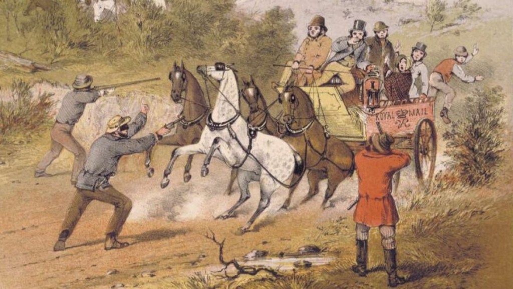 Attacking the mail bushranging, New South Wales, 1864 – National Library of Australia.