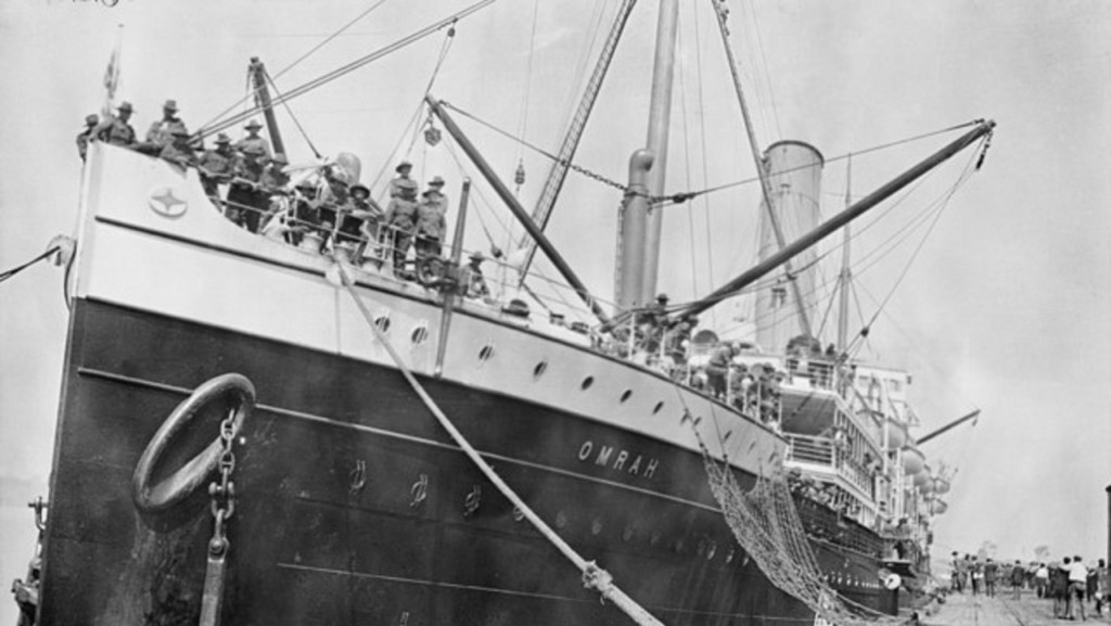 HMAT Omrah with the 9th Battalion aboard at Pinkenba on the day of embarkation – Australian War Memorial C02481.
