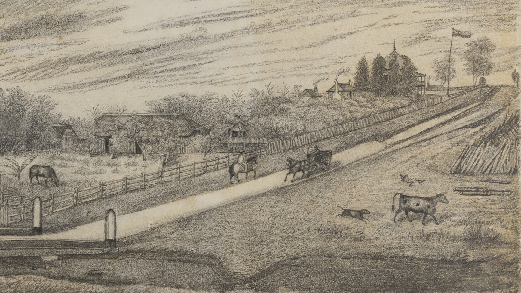 James William Laing, Springvale Gardens, drawing of Spring Gardens, New Town, Ipswich, 1869 – State Library of Queensland.