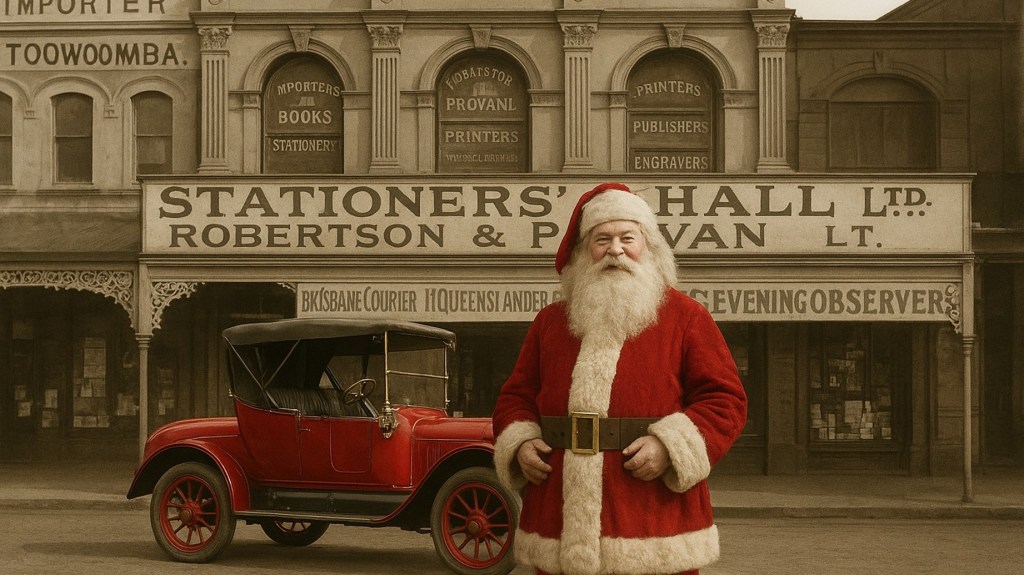 Representation of Father Christmas at Robertsons & Provan, Toowoomba, 1907 – ChatGPT.