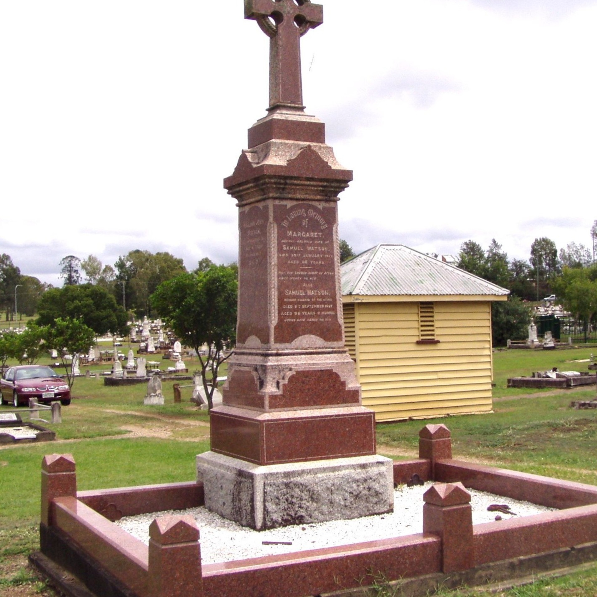 Samuel Watson memorial, Ipswich General Cemetery – Anne – here lies 2018 via Find a Grave website.
