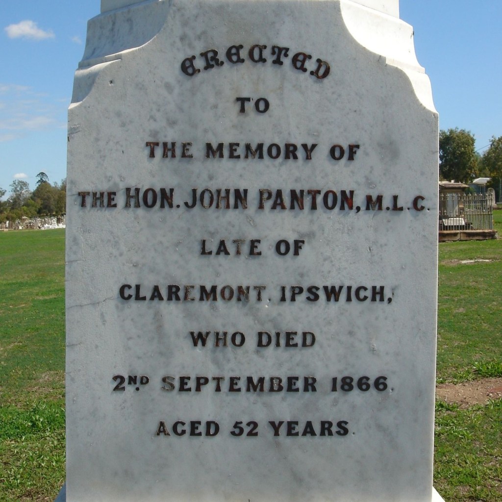 John Panton Ipswich Cemetery memorial – Brett Williams 2017 via Find a Grave website.