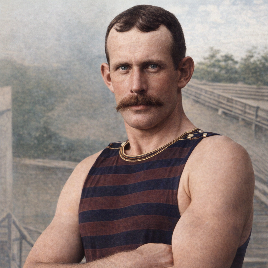Champion sculler MJ Slack c1892 – Harold Peacock repaired colourised with Copilot from State Library of Queensland.